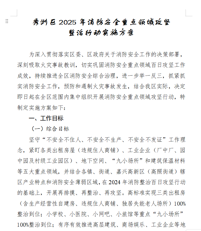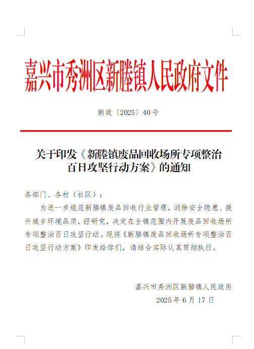 新塍镇紧扣秀洲区“高标准、实举措推进整治”要求,按照区委区政府2025年底消防安全重点领域整治行动部署,将废品回收场所消防隐患排查整治列入镇重点“精准攻坚”项目,成立镇主要领导牵头的攻坚领导小组,制定“强化安全共识、压实消防责任、科学清退隐患、长效管理风险”四步路径。通过每日调度消防相关问题、分片包干排查安全漏洞、部门联动破解整治难点,明确责任分工,快速扫清障碍,以镇域实践响应区级部署,为全区整治抢出时间。