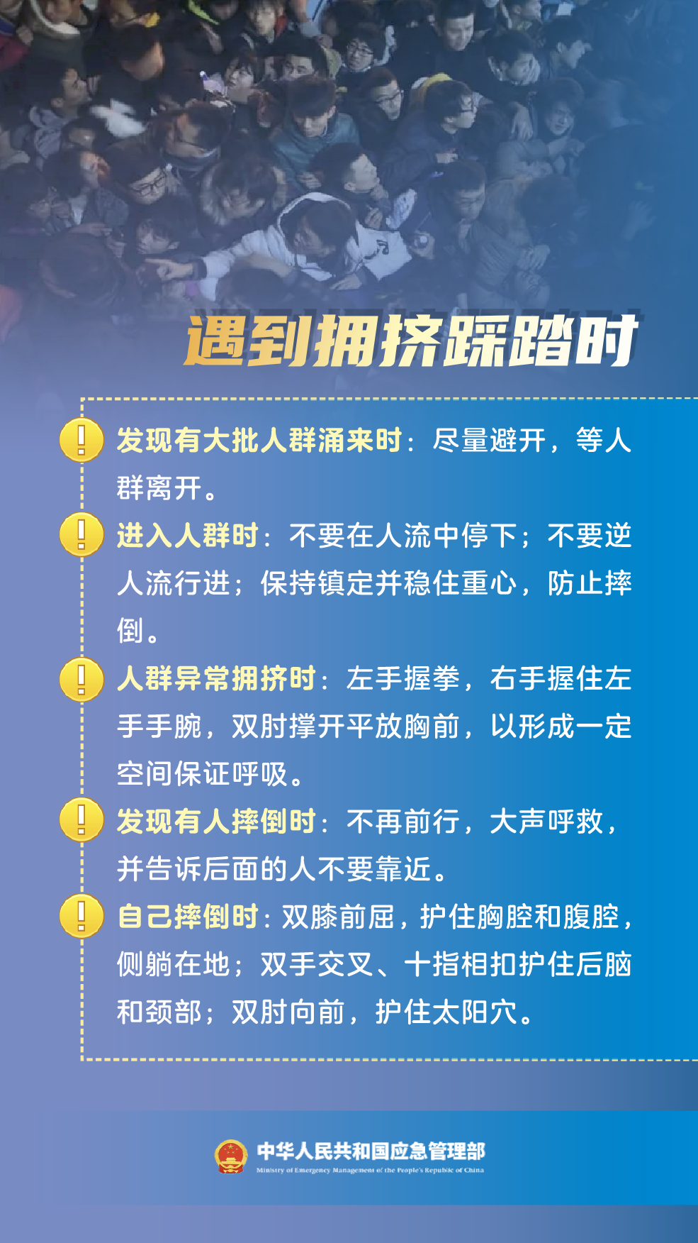 突发踩踏,又该如何自救?