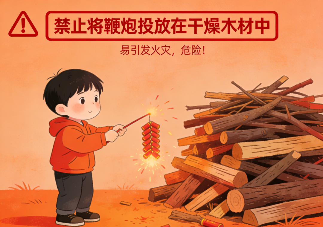 禁放区域禁止燃放烟花爆竹。不要让孩子将鞭炮投放在封闭的容器中、干燥的木材中、或是化粪池等易燃易爆场所。
