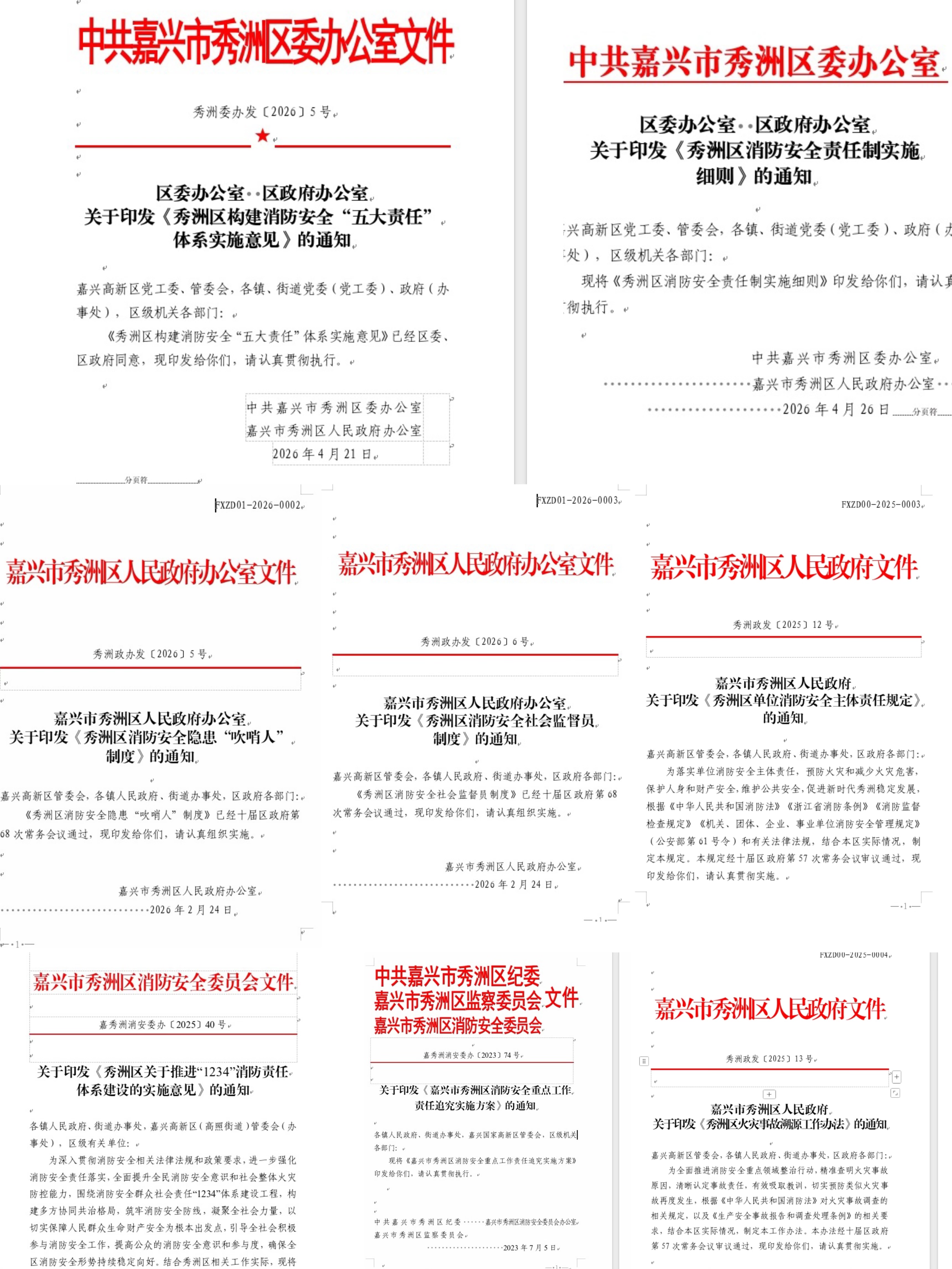 近日,秀洲区委、区政府办公室相继印发《秀洲区构建消防安全“五大责任”体系实施意见》及配套《消防安全责任制实施细则》,标志着全区消防安全“五大责任”体系全面落地,消防治理体系和治理能力现代化建设迈入制度化、规范化、法治化新阶段。