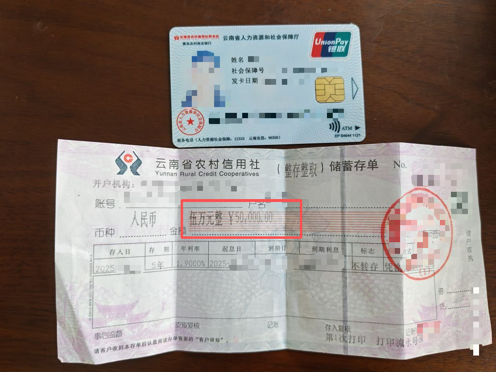 里面是一张存单和社保卡