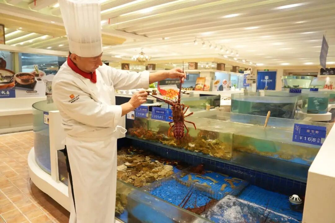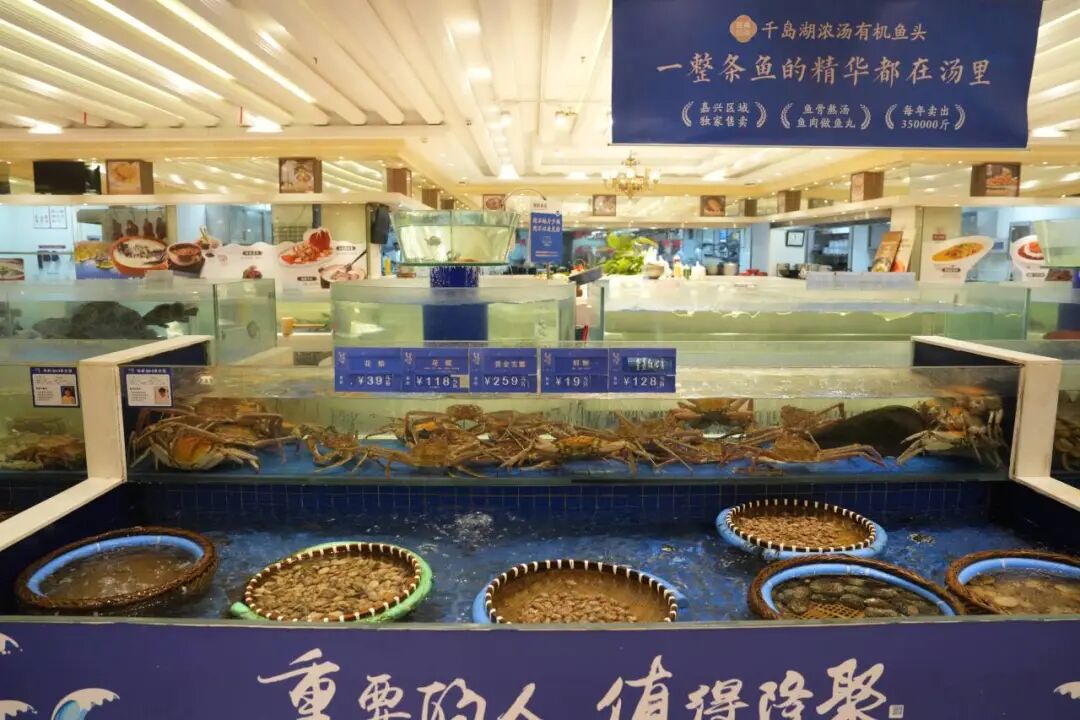 帝王蟹等大海鲜有两种处理方式可选:直接打包活鲜回家自己做,或由酒店预处理,回家简单烹饪即可。“上周有位顾客订了5份自提套餐,说要带去莫干山民宿,一大家子边看山景边吃‘秀洲味’!”