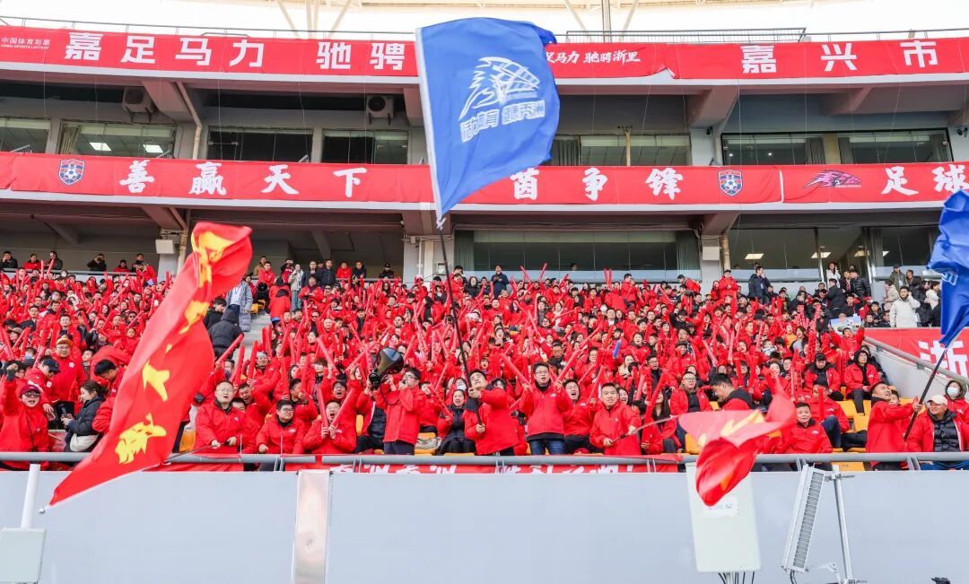 尽管身份各异,但此刻他们怀着对秀洲队的热忱,用整齐的呐喊与炽热的情怀,为秀洲队加油。