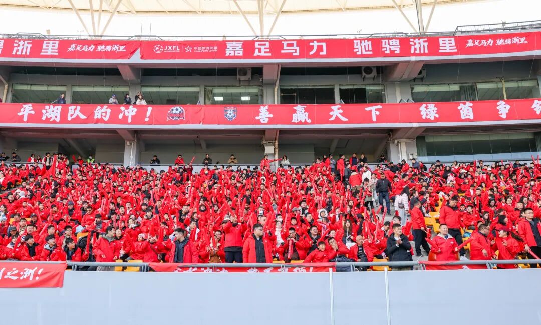 每一张面孔都洋溢着对家乡的热爱,每一次挥舞都凝聚着对胜利的期盼,球迷和秀洲队一起战斗!