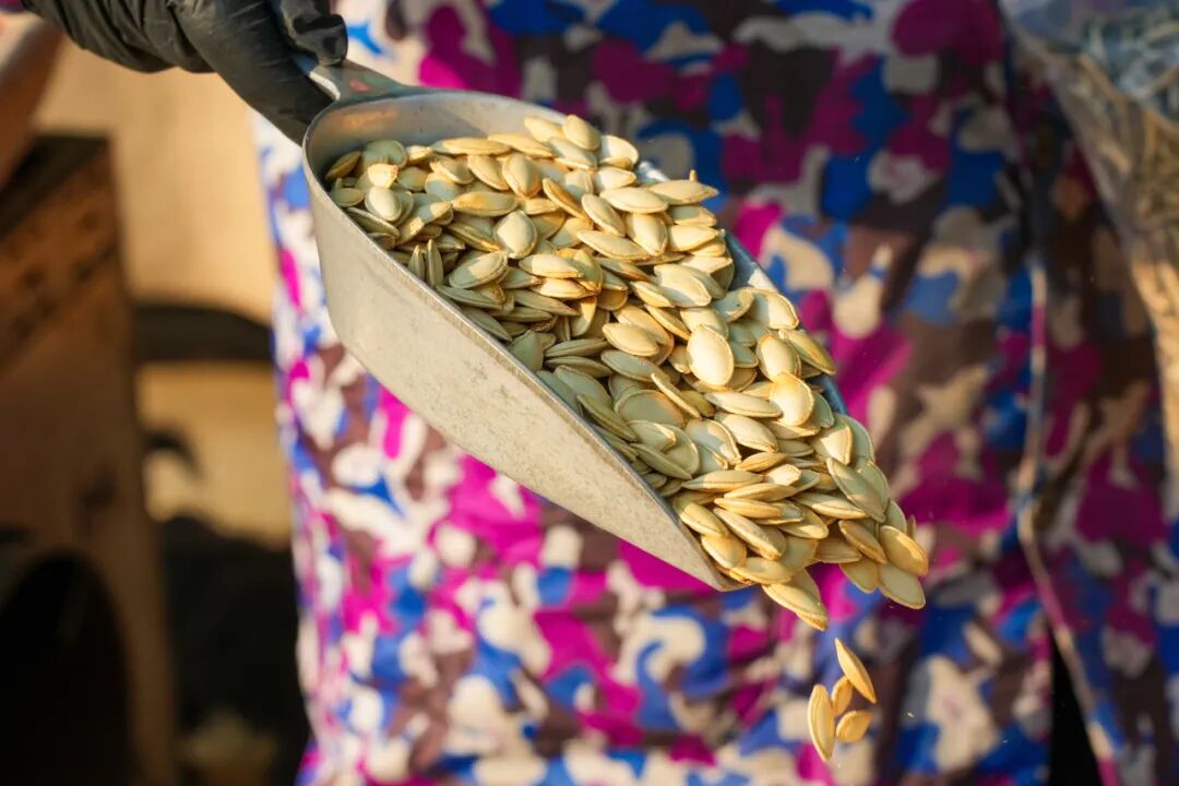 店里的小开口南瓜子更是“独门绝活”,别处难寻。“市面上的南瓜子大多不开口。要炒得颗颗开口均匀、不焦不糊,最见功力。”老孟语气里透着自豪,“火轻了,不香也不开口;火重了,发苦发涩。这手上掂量的功夫,是几十年练出来的。”