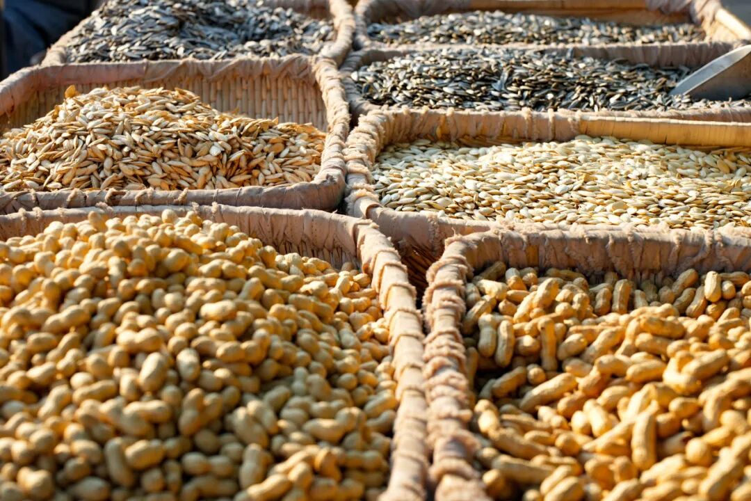 记者在店里看到,货架上整齐摆放着各类炒货,内蒙古大白南、云南毛边奶瓜子、河南小金生、吉林四粒红……品类丰富,琳琅满目。老孟介绍,店里的成品炒货有近200种,其中一百七八十种都是现炒的。