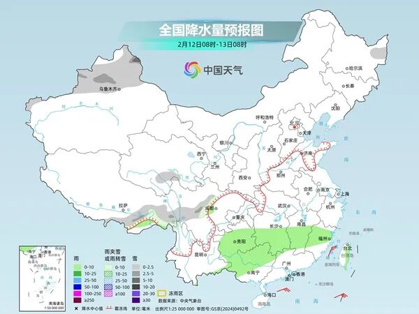 明天,内蒙古东部、黑龙江北部、新疆沿天山地区和伊犁河谷、川西高原南部等地部分地区有小雪或雨夹雪,其中,内蒙古东北部等地部分地区有中到大雪;江南中北部和南部、西南地区东南部、广西中西部等地部分地区有小到中雨,其中,湖南西部、贵州中部等地部分地区有大雨。