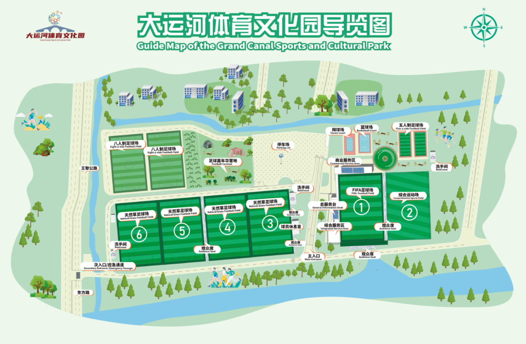 大运河体育文化园早就布置妥当!按高标准打造的天然草球场,划线清晰规范,专业赛事配置拉满。赛场周边指引立牌、卫生间、休息区全到位,安全保障妥妥的。