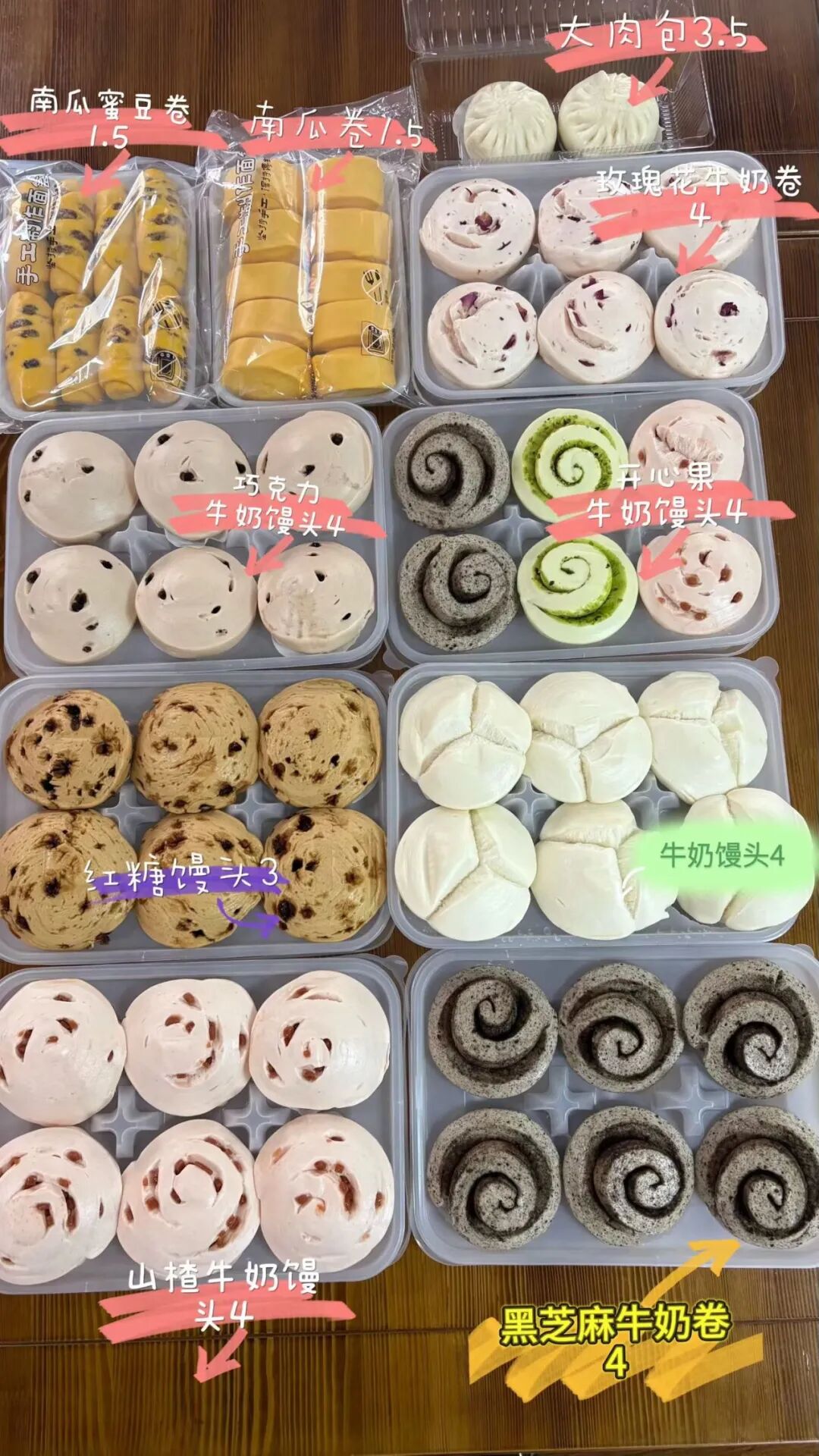 值得一提的是,“王店包子铺”还有许多隐藏款:南瓜紫米馒头、牛奶奥利奥馒头、紫米椰奶包、芝士红糖馒头……如果需要尝鲜,要提前预订。