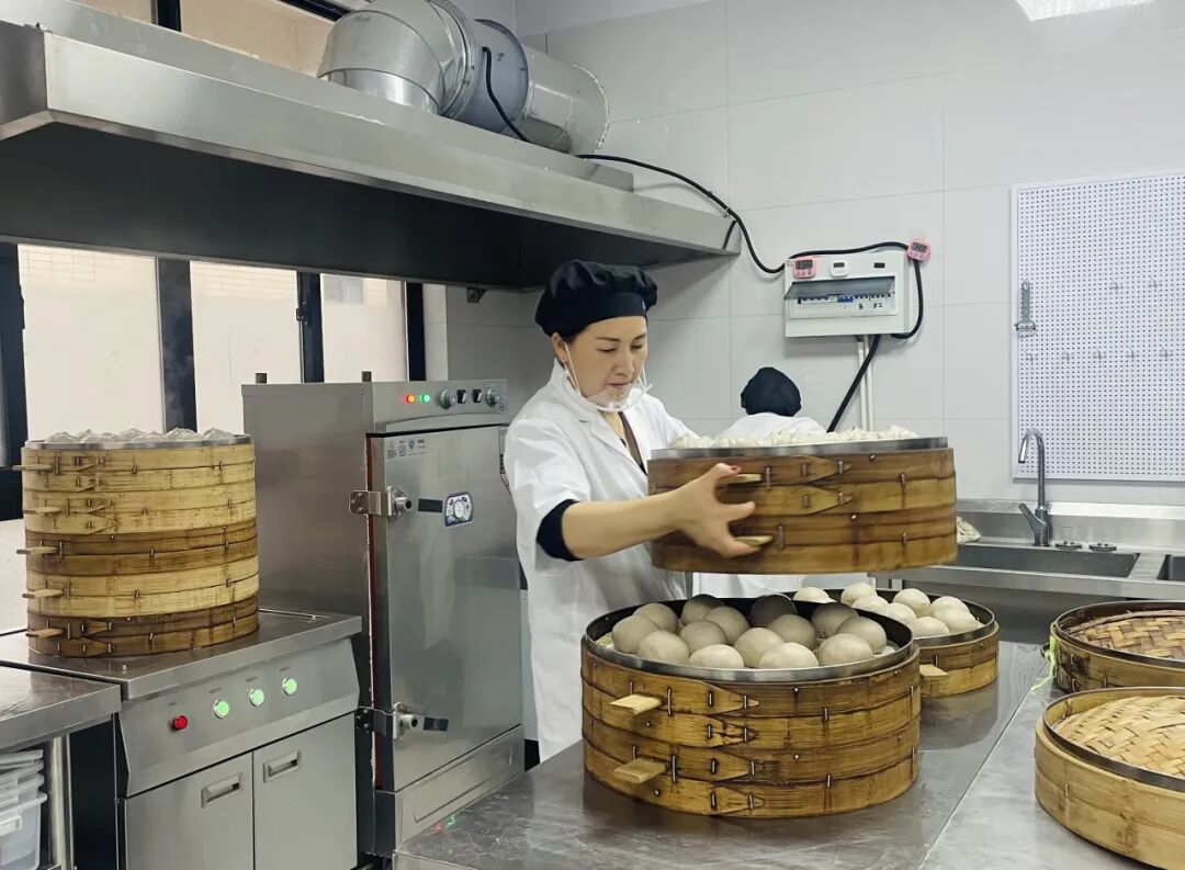 伴随着“哧哧”的声响,蒸箱缓缓打开,一团团热气升腾而起,浓郁的面香、肉香、奶香瞬间弥漫整个操作间,一个个白白胖胖的包子、鲜奶馒头新鲜出炉。仅一个大肉包就重达120克,用料扎实、分量十足,咬上一口,外皮松软劲道,内里汁水鲜甜,满口鲜香,让人回味无穷。