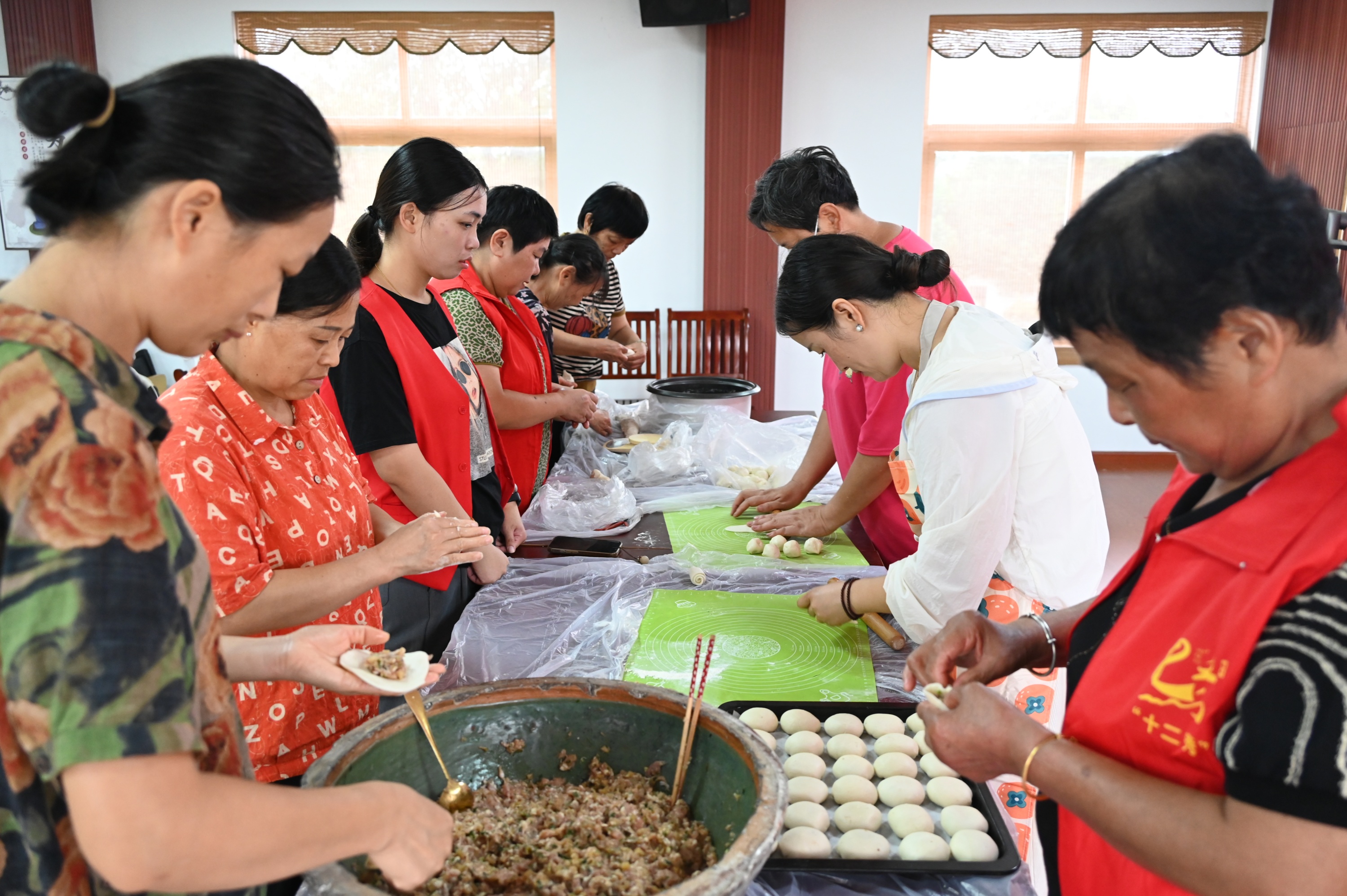 在村妇女主任姚红轮的带领下,大家共同制作鲜肉月饼:揉水油皮、包油酥、擀饼皮,并填入由肥瘦猪肉、葱姜、酱油和糖调制的馅料。细心收口、压扁成型后,饼坯送入烤箱。出炉的月饼金黄酥香,肉馅咸鲜流汁,满屋飘香。参与活动的特扶家庭成员张阿姨表示,一起做月饼让节日格外有意义,心里温暖。大家通过细致准备和默契协作,感受到村集体的温暖与力量。