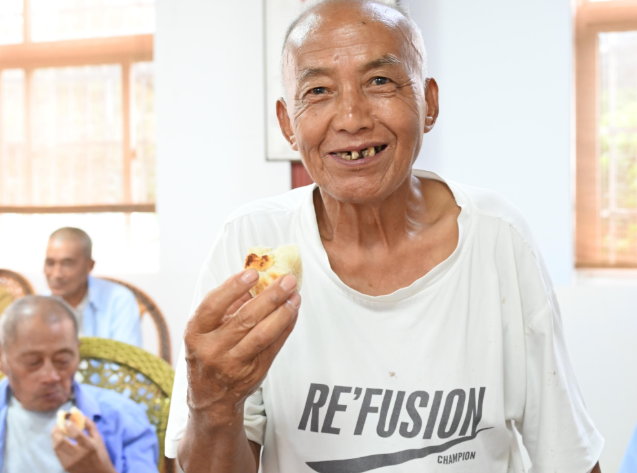 这份承载着双重关爱的肉月饼——既寄托着对特扶家庭的深切关怀,也满含着对老年群体的温暖敬意,由志愿者们第一时间送到了老人们手中。“这肉月饼还是热乎的,酥得直掉渣,比买的还好吃!”年过八旬的李爷爷捧着月饼,笑得合不拢嘴。