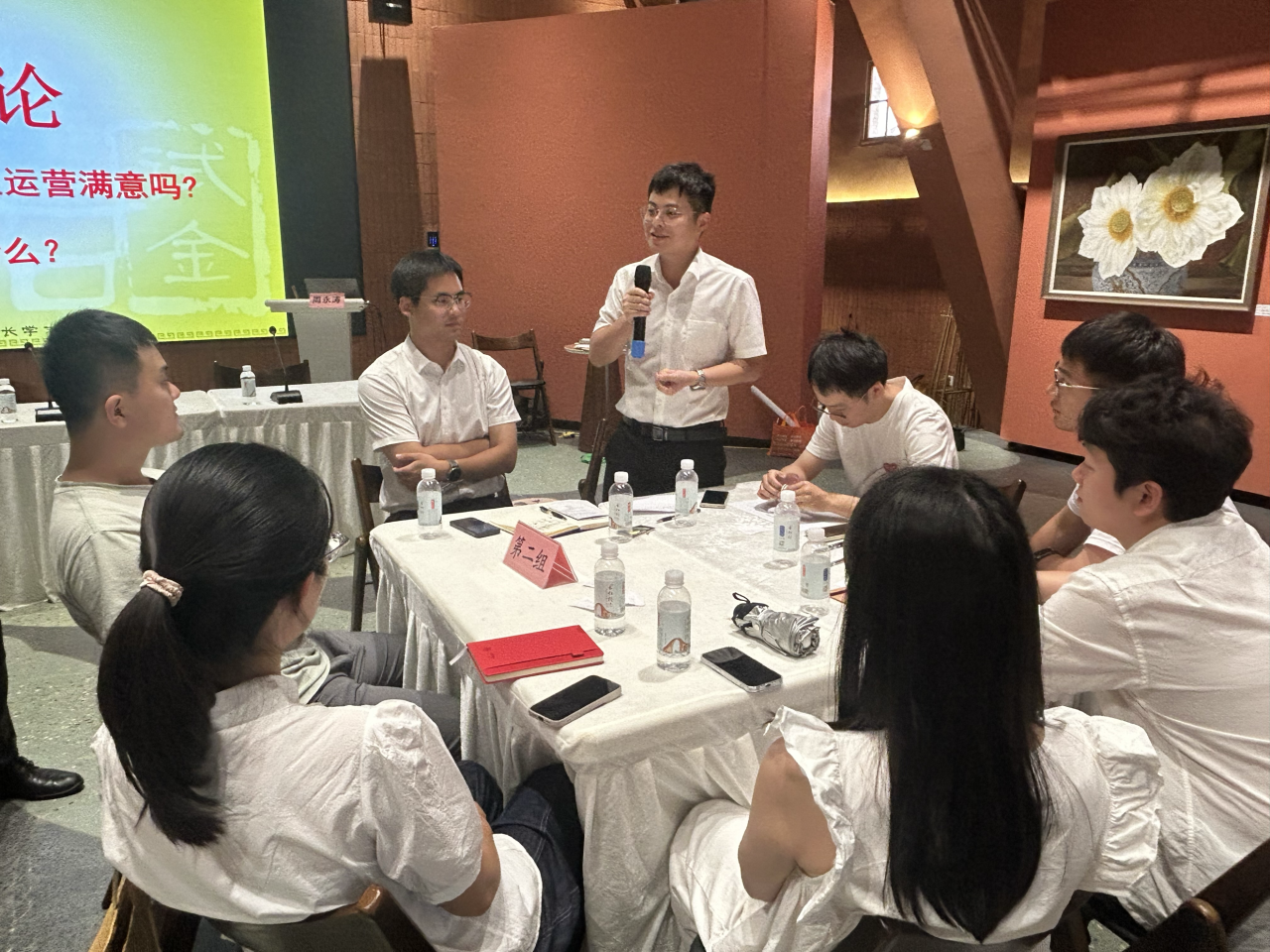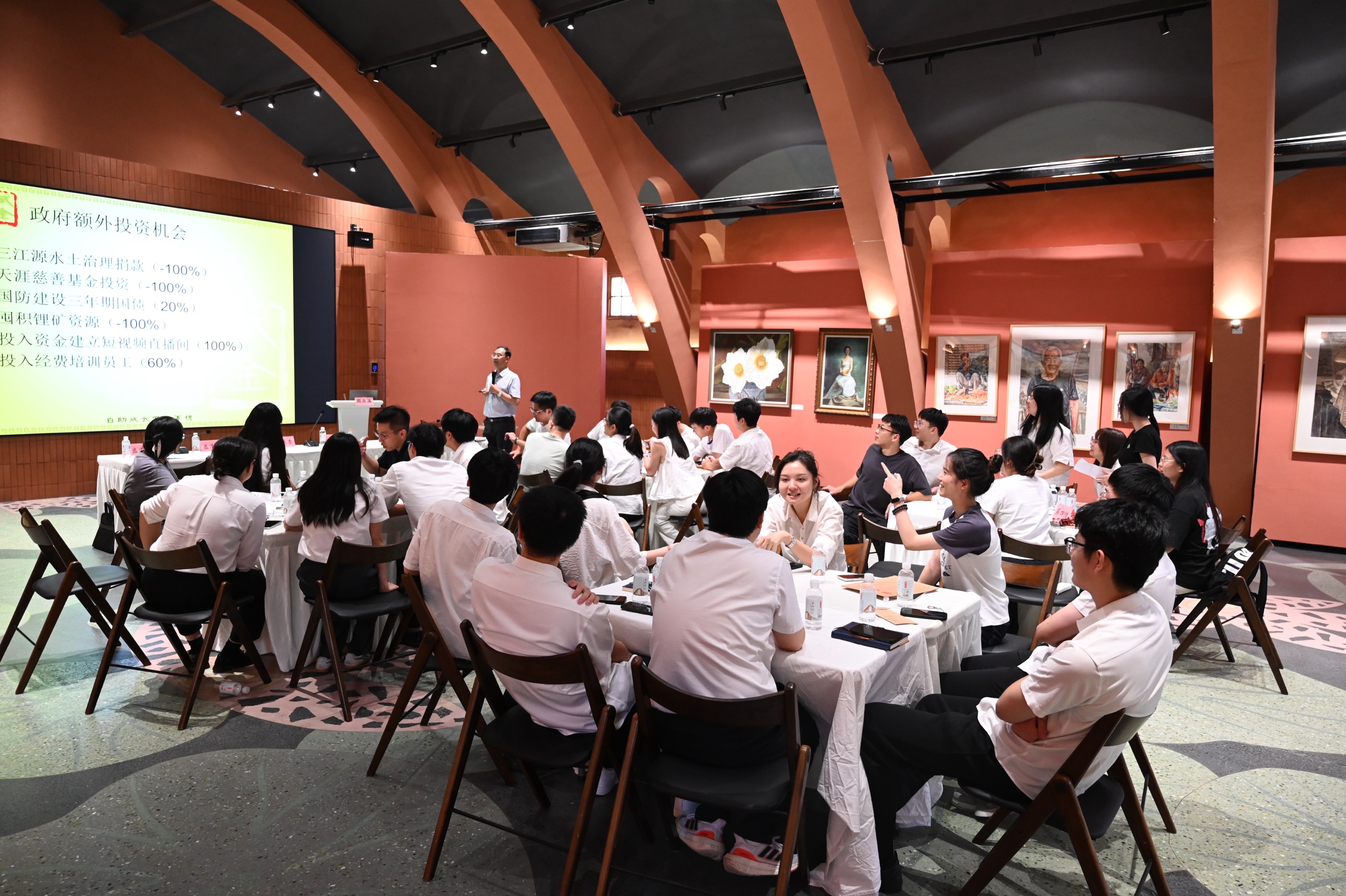作为压轴环节的“组团协作,沙场点兵”将活动推向高潮。四个小组围绕“乡村振兴”这一核心主题,开展村级经济发展沙盘模拟。在长达两个半小时的模拟实战与复盘展示中,年轻干部们思维碰撞、集思广益,充分展现了团队协作精神与破解发展难题的潜力。