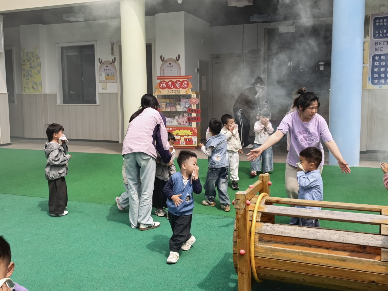“火灾警报响起前,没有任何提前通知,也不告知演练流程,就是要模拟最真实的突发火情。”新塍镇应急消防管理站站长曹永学介绍。演练开始后,工作人员在园区指定位置点燃烟雾弹,刺鼻的浓烟迅速在走廊、活动室弥漫,模拟火灾场景瞬间笼罩整个托育园。伴随着尖锐的应急警铃,原本安静的园区立刻进入应急状态,一场与“火情”赛跑的疏散演练正式打响。