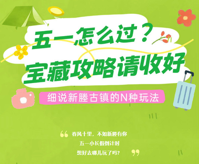 为方便游客往返,五一假期设置了旅游小巴,途经五个站点:新塍塘绿道、新塍老街、小蓬莱景区(能仁寺)、潘家浜景区、清池温泉景区。