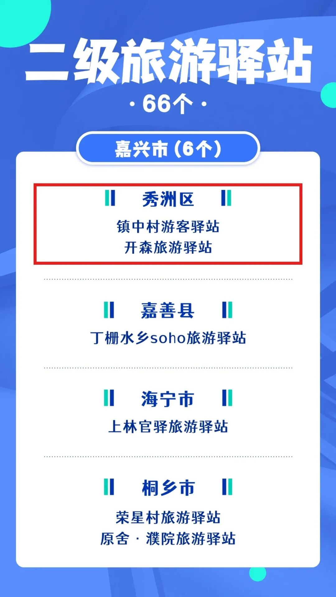 近日,浙江省文化广电和旅游厅第四批浙江省旅游驿站名单公布,全省共216个驿站入选。其中秀洲区的镇中村游客驿站和开森旅游驿站凭借完善的服务设施与特色文旅融合优势,双双获评二级旅游驿站,为区域文旅服务再添新亮点。