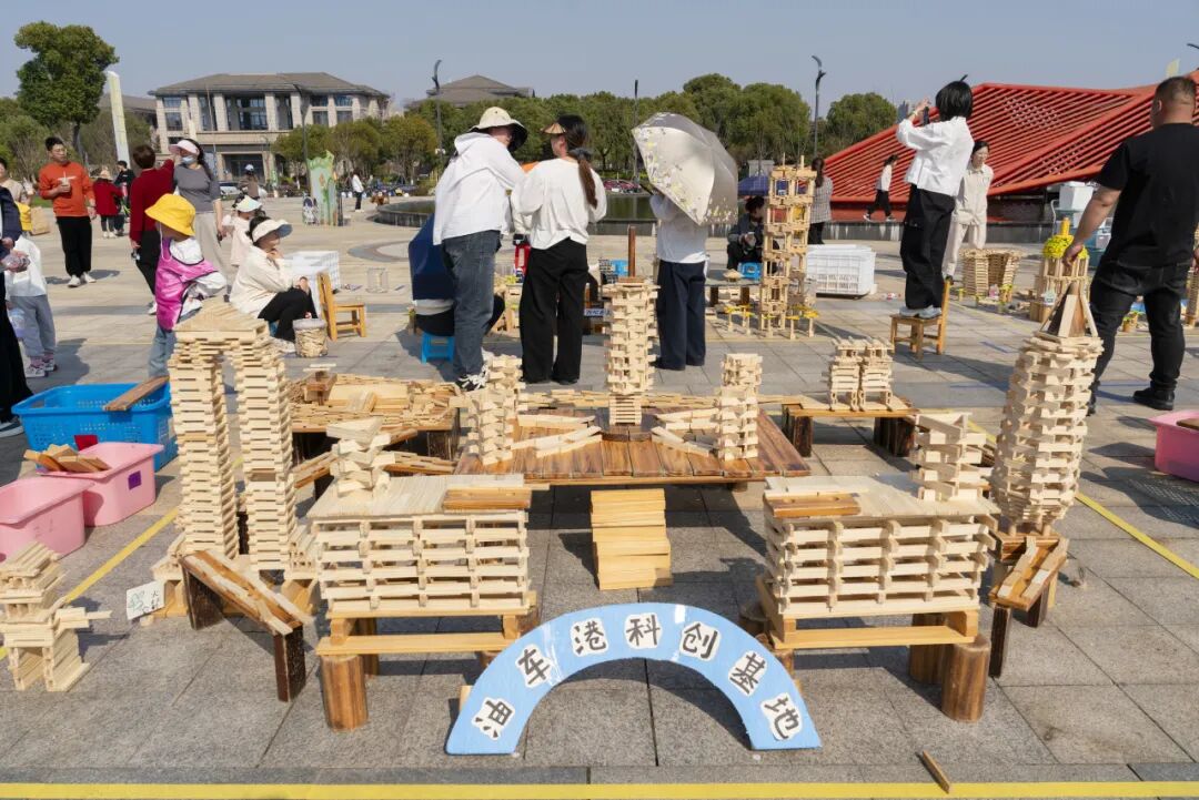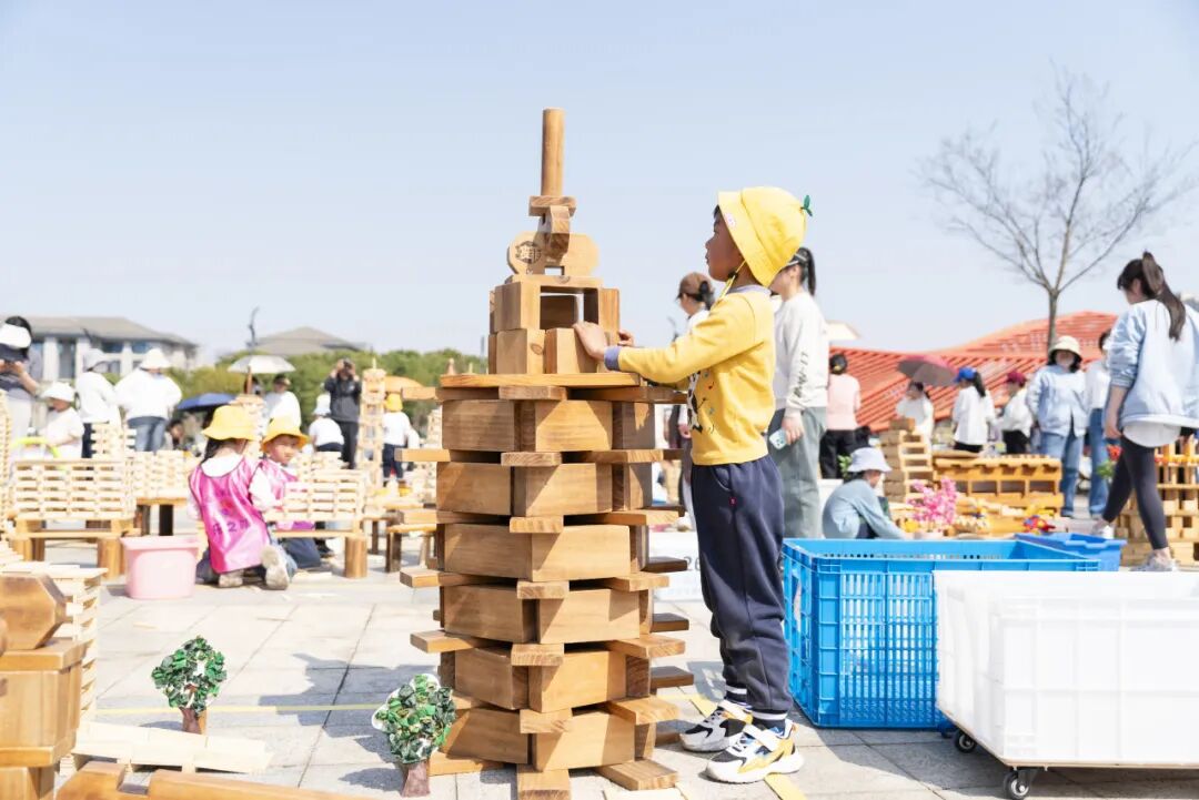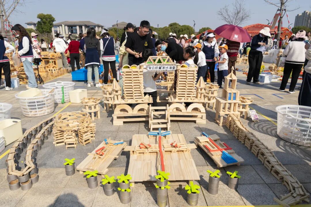 活动中,全区29家幼儿园约180名秀洲萌娃进行现场比拼积木搭建,小小“建筑师”们将五彩积木与各式各样的低结构材料相结合,拼搭出孩子们心中的秀洲——桥梁、地标、未来城市……搭建过程中还有小小解说员从多角度向现场的观众介绍自己队的作品。