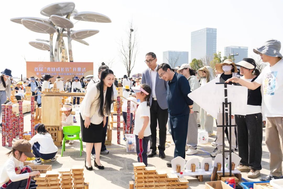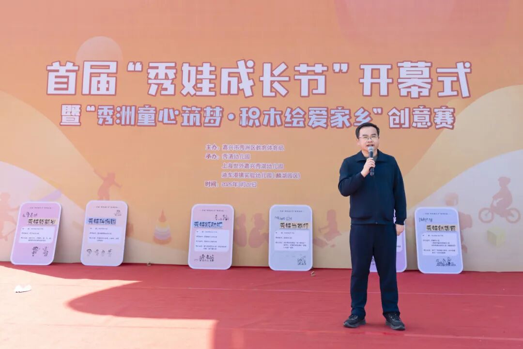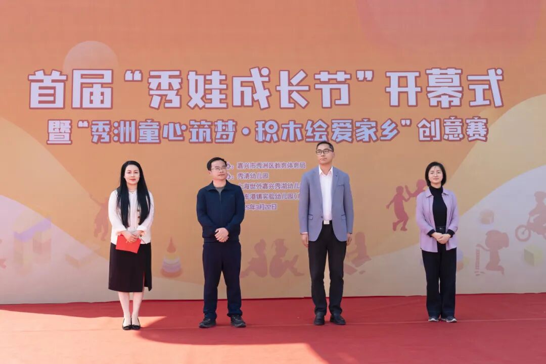 3月22日下午,首届秀洲区幼儿园“秀娃成长节”开幕式暨“秀洲童心筑梦·积木绘爱家乡”创意赛,在秀湖公园光伏树广场隆重举行。嘉兴市教育局基教处处长杜平,秀洲区教育体育局党委书记、局长金旗明,局党委委员顾蔚,市幼教干部陈春艳等领导出席本次活动。参加活动的还有全区29家幼儿园,29支幼儿参赛队,教师、家长及社会人员共700余人。