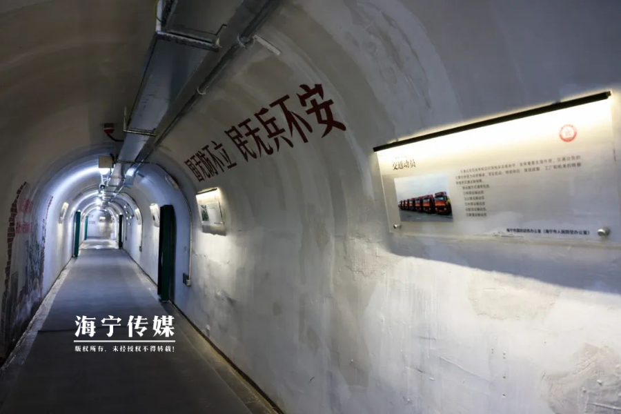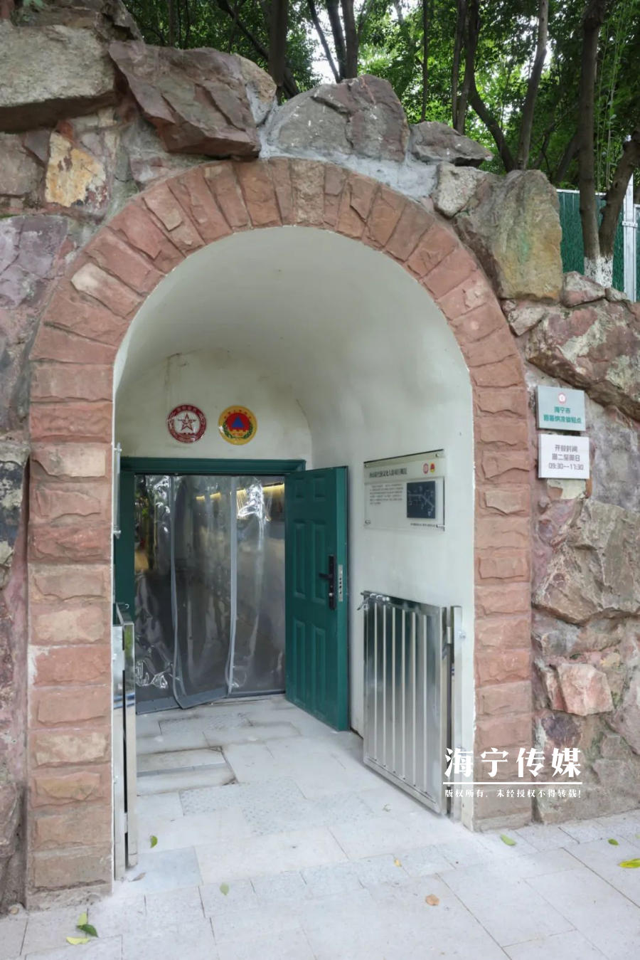 海宁市西山防空洞文化人防体验中心(入口:西山公园南坡绿地,由钱君匋艺术研究馆西侧停车场进入)。
