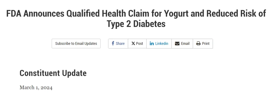 最近,美国食品药品管理局(FDA)批准了一项有限健康声明:定期吃酸奶,有助于降低2型糖尿病的发生风险。