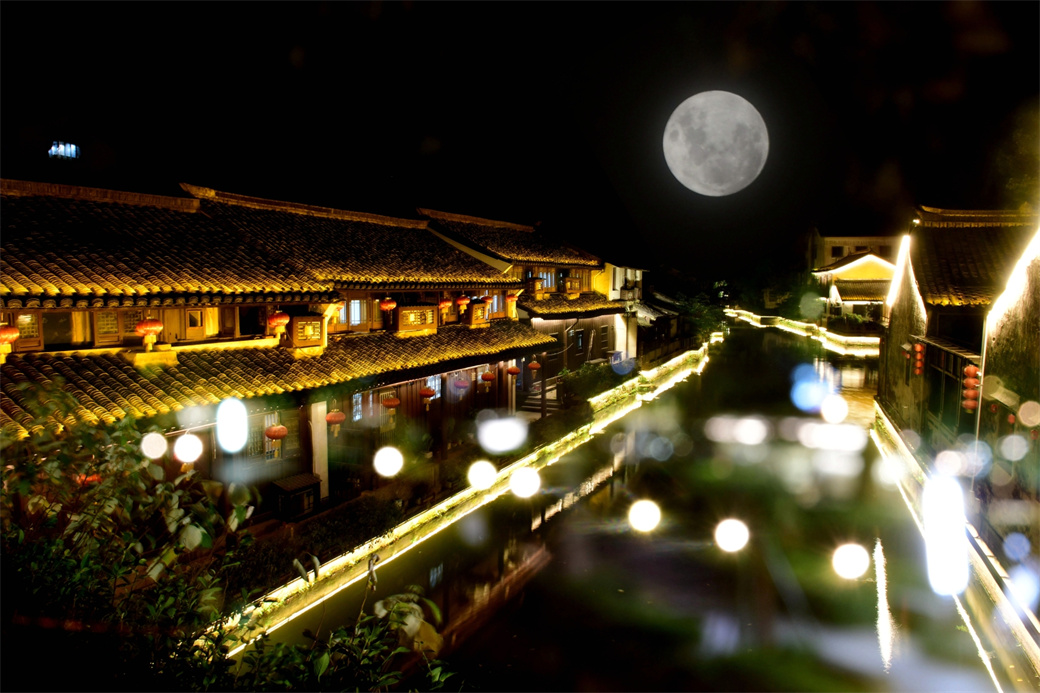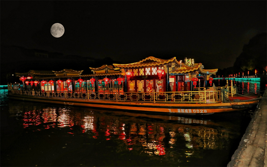 环城河画舫与月亮越牛新闻记者章斌/摄