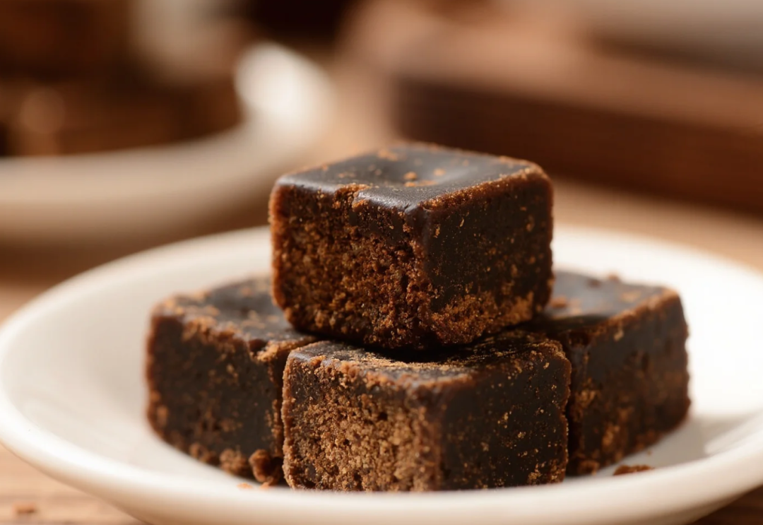 黑糖为未高度精炼蔗糖。工艺较红糖复杂、制作温度更高,色深且有焦香,功效类红糖但温通更强,除健脾暖胃、活血化瘀外还能温经通络,缓解寒证疼痛。