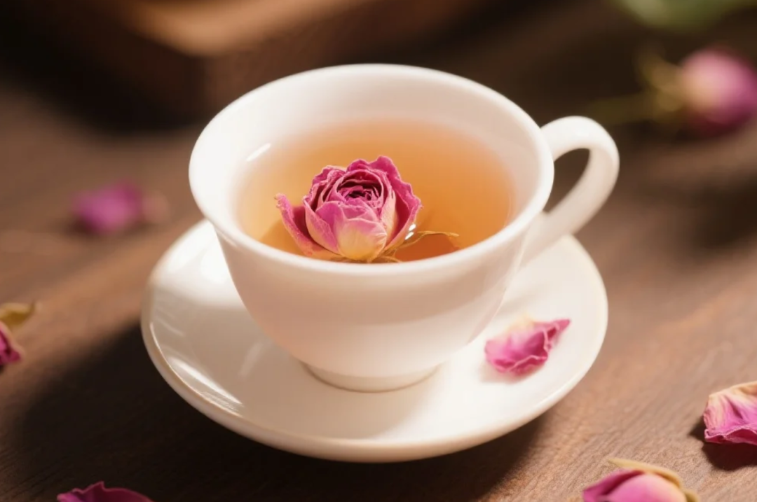 玫瑰花泡水,或用玫瑰花、陈皮等泡水代茶饮,有疏肝解郁的作用。