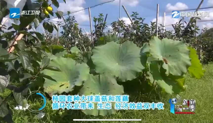 “莲藕起到一个缩水的作用,因为柿子的需水量比较大。大球盖菇也是用农业废弃物、秸秆、玉米芯来种植,一个可以增加我们经济收入,第二个对改良土地也有很好的作用。”嘉兴市金秋生态农业有限公司总经理徐艺伟说道。